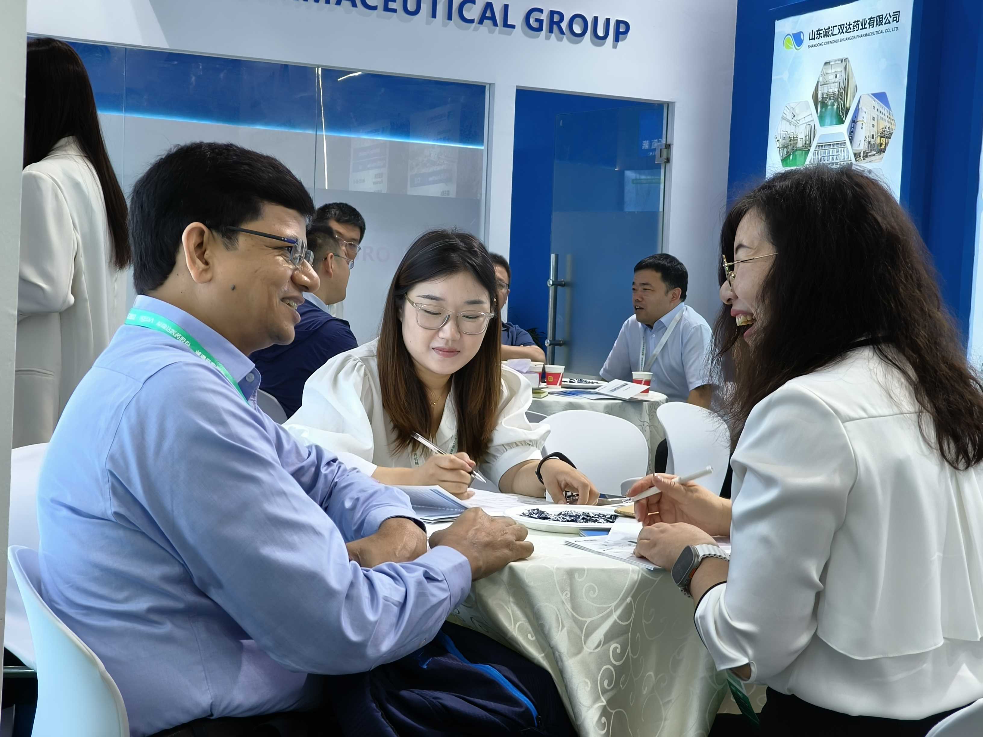 The exhibition continued to be a great success, the popularity of the booth of ChengHui Pharmaceuticals was very hot, attracting many domestic and foreign customers to visit the booth, and the seats were full. The executives and sales team of ChengHui Pharma had a full communication with new and old partners during the exhibition.